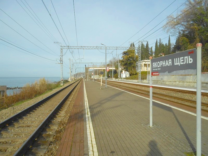Мацеста. К сожалению, это красивое здание вплотную к путям является бывшим морским вокзалом (портпунктом), а не железнодорожным вокзалом.