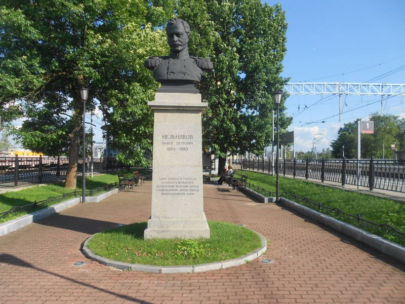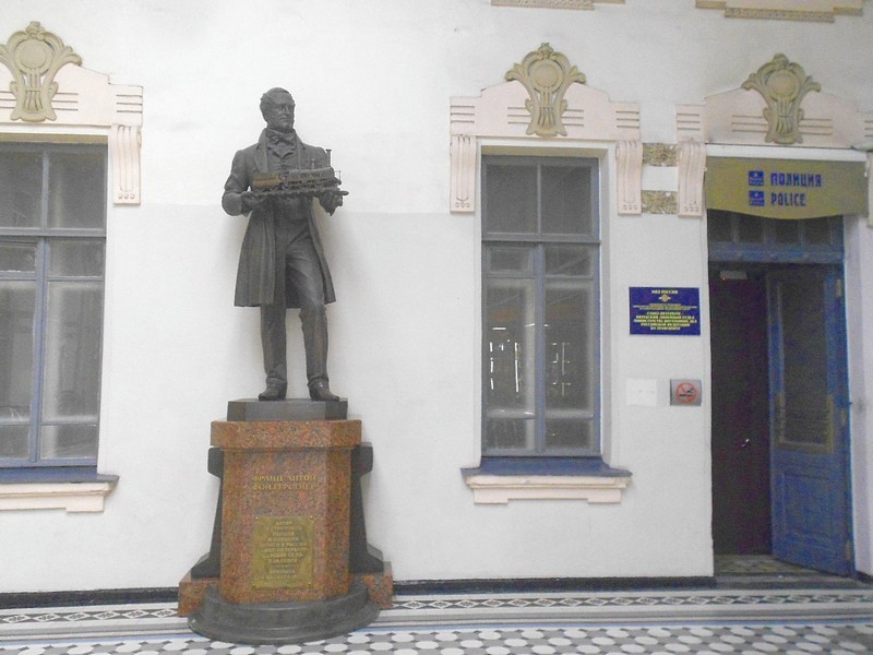 Витебский вокзал. Памятник строителю Царскосельской железной дороги Францу Антону Герстнеру. Рядом с пиктограммой