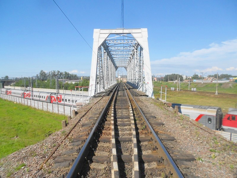 Железнодорожный мост через реку Волхов. Вид с автомобильного моста.