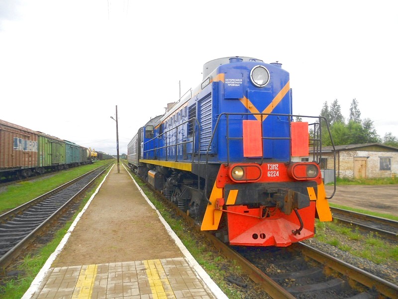 Поезд из Окуловки (тепловоз ТЭМ2-6224 с одним пассажирским вагоном) прибыл на станцию Неболчи. Через три часа