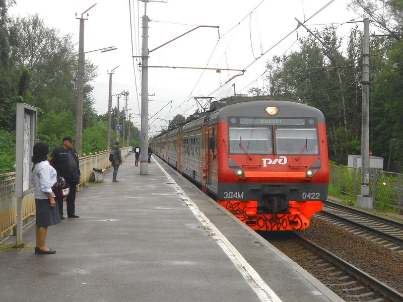 Платформа Озерки. Прибывает электропоезд ЭД4М-0422 на Выборг.