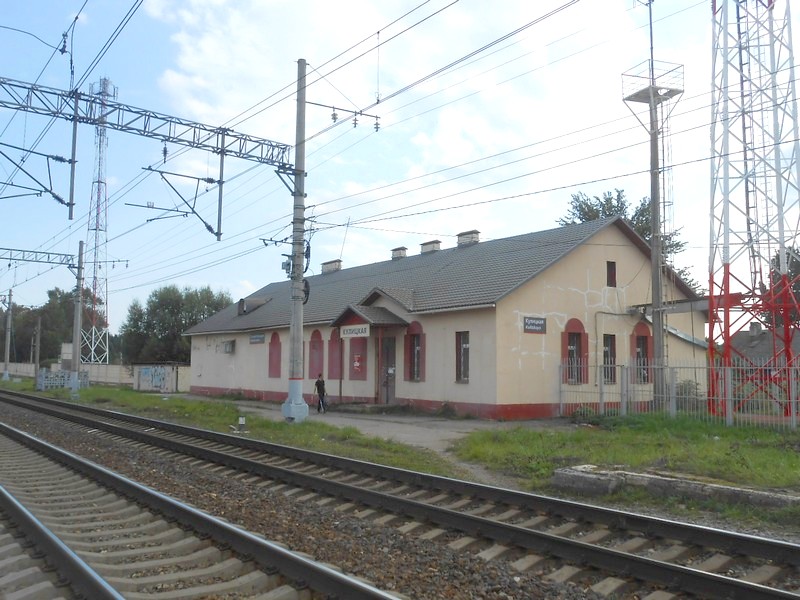 Кулицкая. Крайне незамысловатое станционное здание, построенное в 1990-е годы Балтийской строительной компанией.