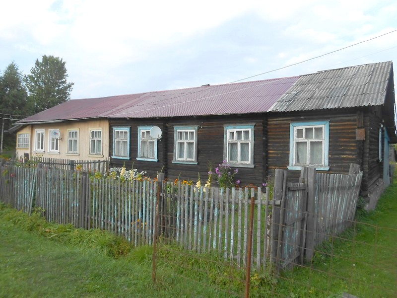 Посёлок Красная Пресня у платформы Кулицкий Мох. Третьесортный деревянный дом разделён на несколько секций.