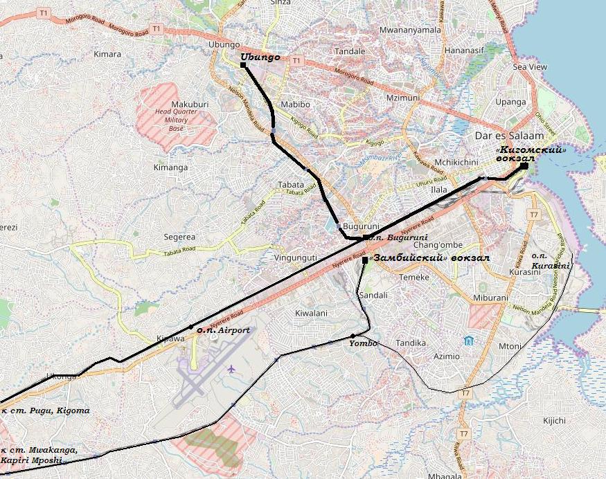 На колее 1067 мм есть маршрут Дар-Замбийский — Mwakanga, 19 км. Маршрут по портовой ветви на Kurasini отменён.
