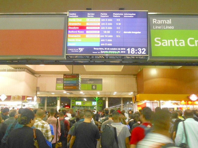 От вокзала отправляются только пригородные поезда максимум на 80 километров. Самая дальняя точка - станция Guapimirim. Турникеты, в час пик огромная толпа, гораздо больше, чем на любом вокзале Москвы.