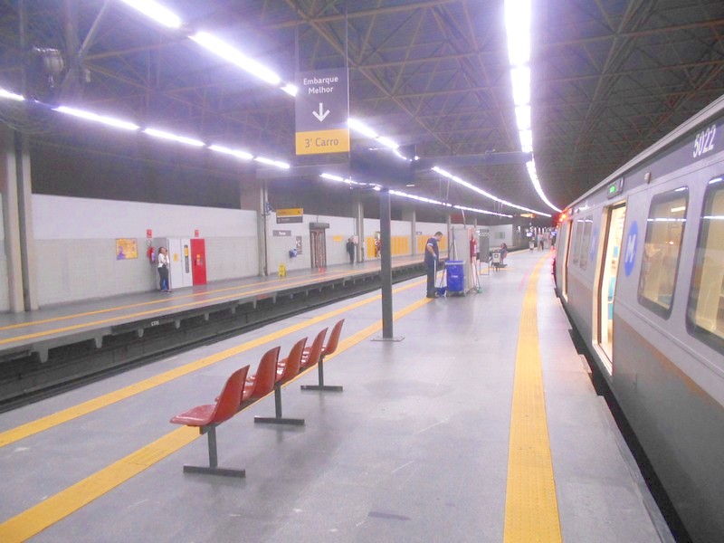 Станция «жёлтой» линии метрополитена Сан-Паулу. Технически линия совершенная, движение поездов без машиниста.