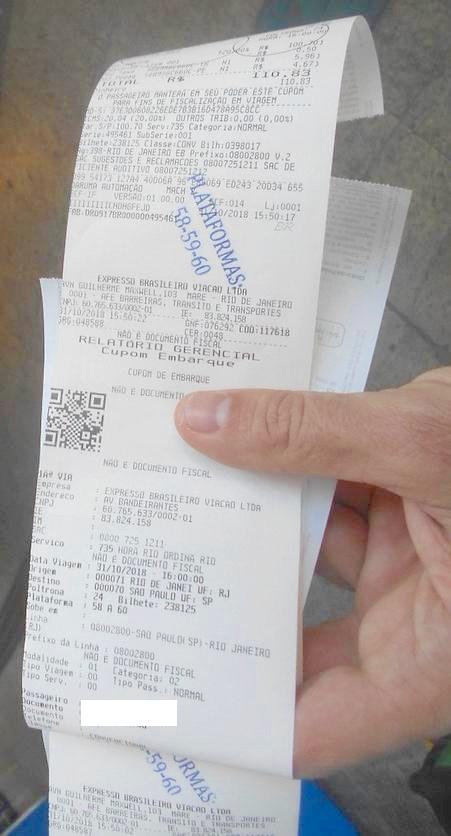 Автобусный билет Рио — Сан-Паулу.
