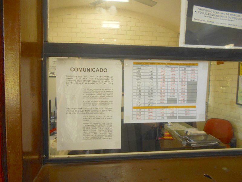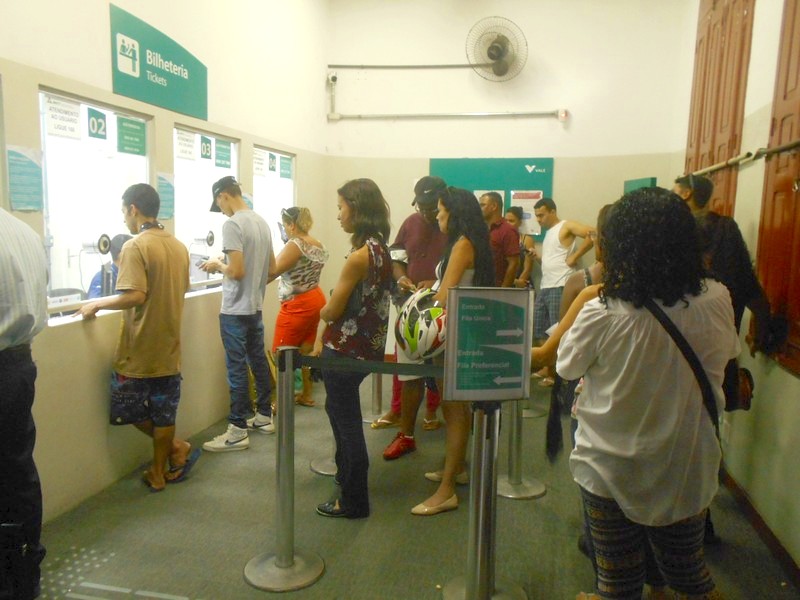 Вход и выход на конечной станции — через турникеты. Охранник провёл через турникет до касс, где пришлось купить билет за 20 реалов.