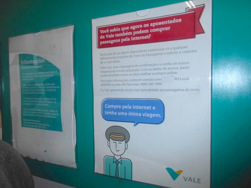 Как уже упоминалось, на пассажирский поезд Белу Оризонти — Педру Ноласку жёсткий дефицит мест. Билеты можно купить на сайте железнодорожной компании, начиная от 60 дней до даты поездки. Нужно ввести ФИО пассажира и бразильский номер налогоплательщика (возможно, подойдёт вымышленный). Система присылает файл, который нужно распечатать.