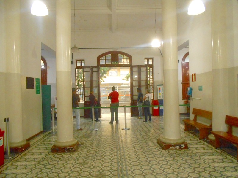 Следы былого величия — надпись, вытесанная на камне, RAMAL SAO PAULO. Это зал, где когда-то были билетные кассы на поезда именно сан-паульского направления.