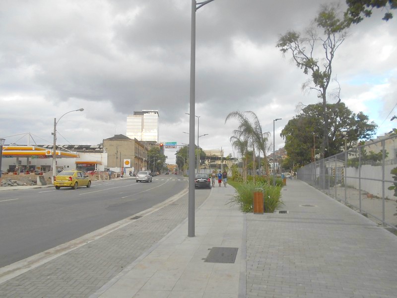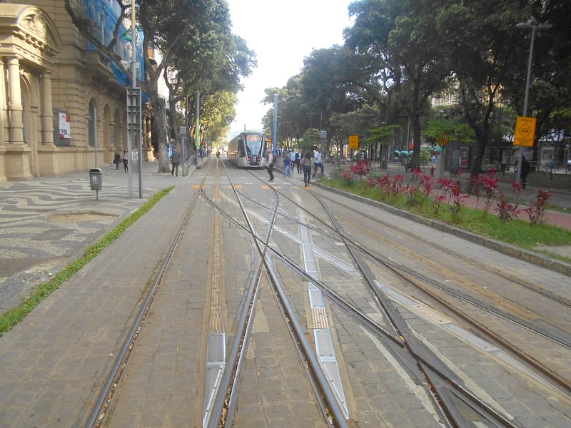 Пешком по центру города к линии «нормального» трамвая, открытой в 2016 году. Как уже упоминалось, здесь новейший и очень комфортный подвижной состав, отсутствие воздушной контактной сети и удивительное для Бразилии отсутствие турникетов как на остановках, так и внутри вагонов. Оплата проезда — с помощью карты RioCard, которую можно купить и пополнять деньгами в автоматах, имеющихся на каждой остановке. После посадки карту нужно валидировать в вагоне. За безбилетный проезд обещан немалый штраф — 170 реалов.