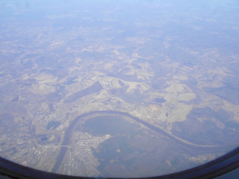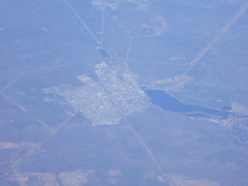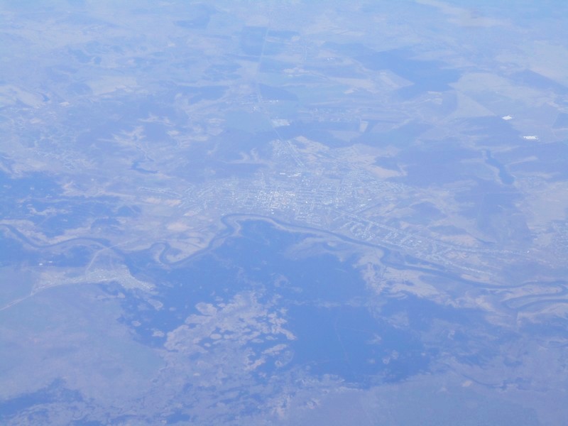 Река Припять и город Чернобыль (выше большого изгиба реки, левее). Пруд-охладитель Чернобыльской АЭС.