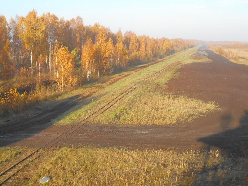 Направо - двухпутная линия к вокзалу Каунас, налево - однопутный обход через плотину, главный путь "калининградского транзита".