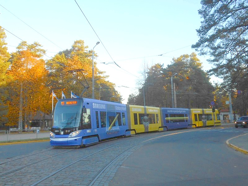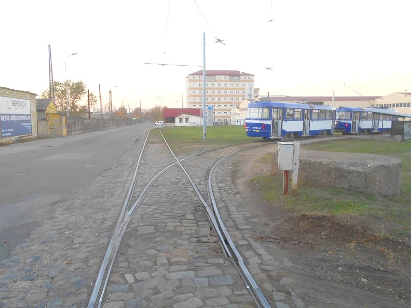 В Риге на трамвайной сети используются штанги и воздушные стрелки.