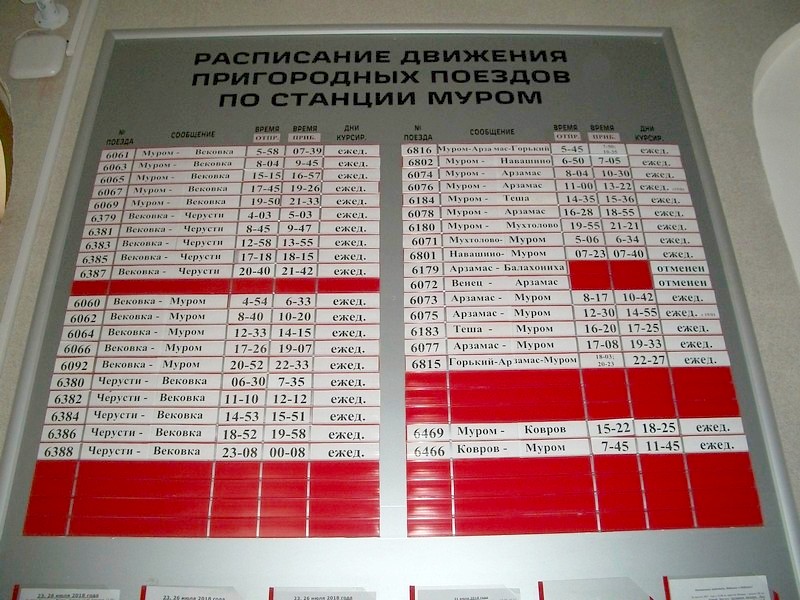 Расписание движения пригородных поездов по станции Муром. Указаны не только поезда на Вековку,