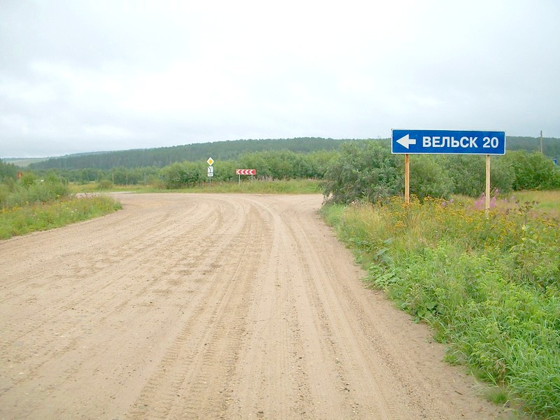 Пересечение с объездной дорогой Вельска, составной частью автодороги Москва — Архангельск. Она была торжественно открыта