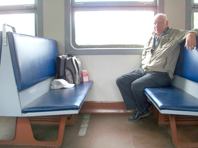 В электропоезде Вологда — Буй. Этот гражданин наезжал на меня и, к большой радости, вызвал полицию в Буе,