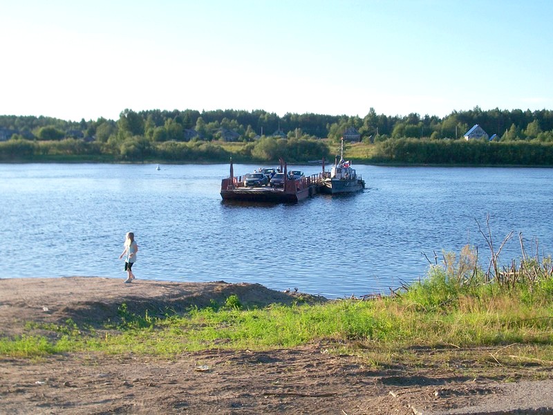 Целевая точка — посёлок Игмас. Он находится на правом берегу реки Сухоны, тогда как автодорога — на левом. Как и в 1999 году, переправляюсь на попутной лодке.