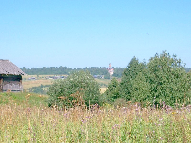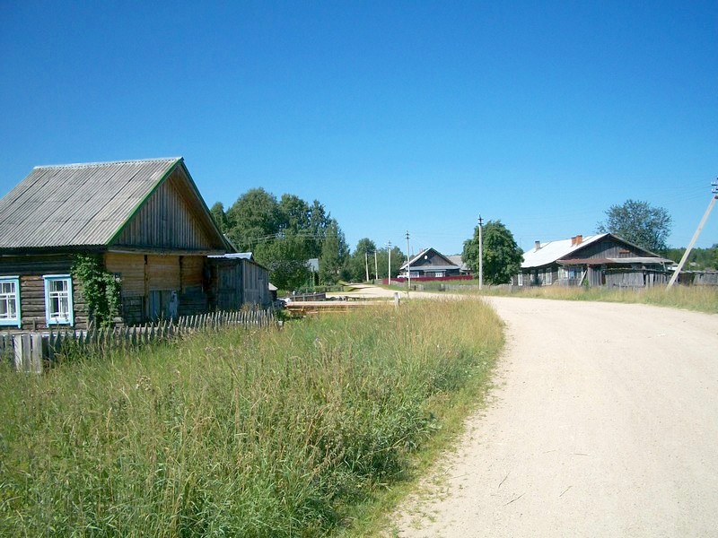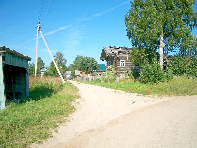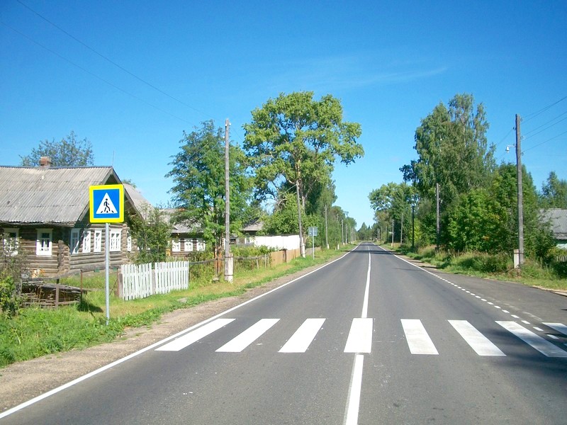 Въезд в крупное село Городищна со стороны Нюксеницы, вид в сторону Игмаса.
