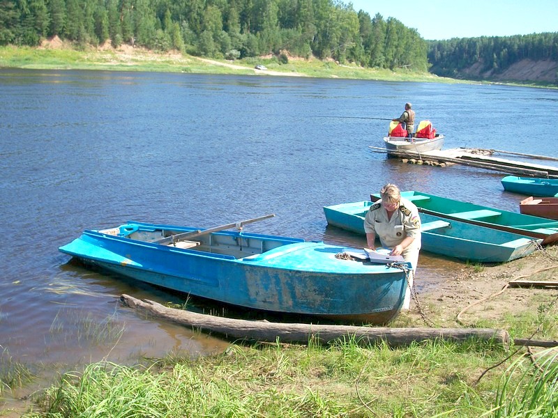Я переправился на лодке с местным стариком, он был рад, что не пришлось работать вёслами, грёб я. Но когда ступили на правый берег, внезапно возникшая там злобная женщина из ГИМС (условно говоря, водный аналог ГАИ) учинила «наезд» за отсутствие жилетов. Я просто бросил рюкзак на берег, бросился в воду и плавал по окрестностям, а на старика она стала выписывать штраф.