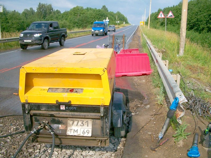 У моста через Сухону. На дорожной технике — номера Тверской области!