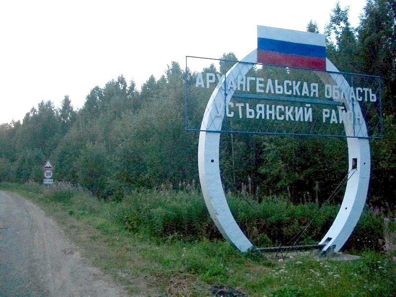 Граница Вологодской и Архангельской областей на автодороге Тарнога — Октябрьский. Время 21:15.
