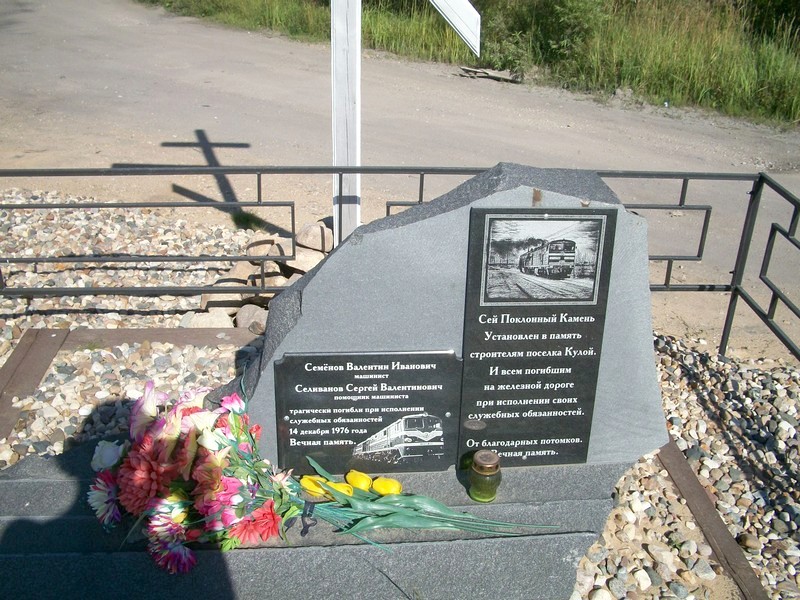 Восточная окраина посёлка Кулой. Памятник машинистам, погибшим при крушении 14 декабря 1976 года.