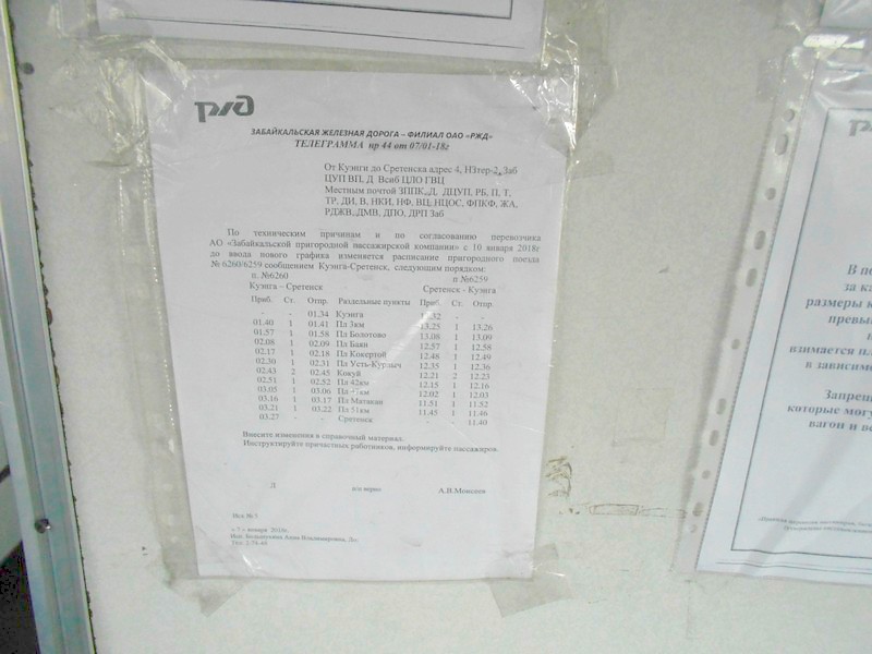 но от Мысовой до Выдрино - разрыв. В расписании сохраняется фирменный стиль Восточно-Сибирской
