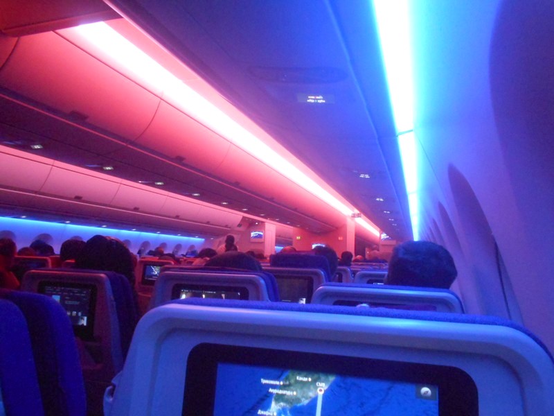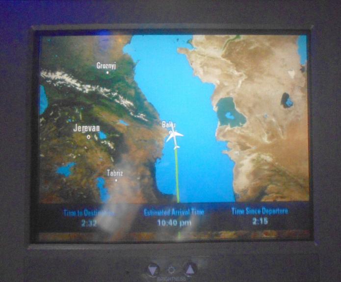 На первом перелёте начиная с Армении безоблачно. Как обычно, суровые в основном безжизненные горы Ирана, также виден город Исфахан. Под конец — Персидский залив с множеством буровых платформ, некоторые с горящими факелами. Посадка в сумерках. Второй перелёт ночной.