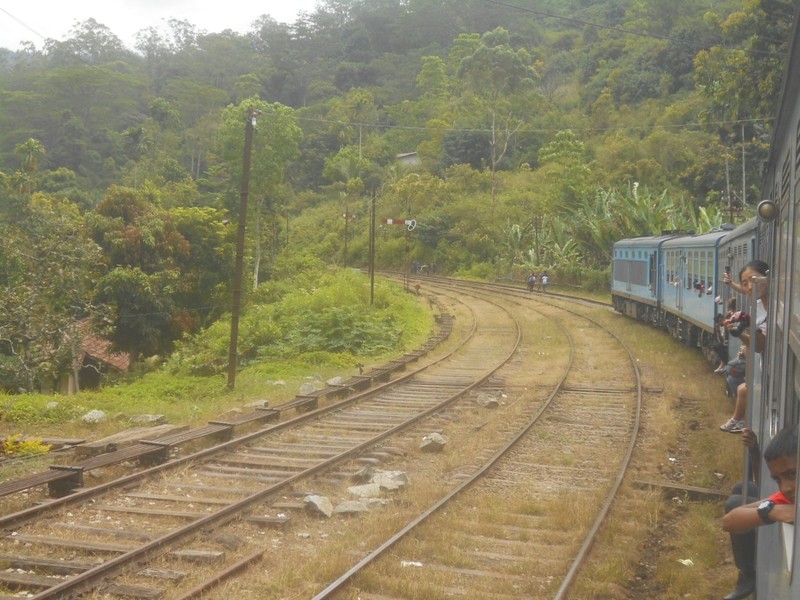 Поезд прибывает на станцию Polgahawela Junction. Слева — главная линия, которая ведёт на север острова.