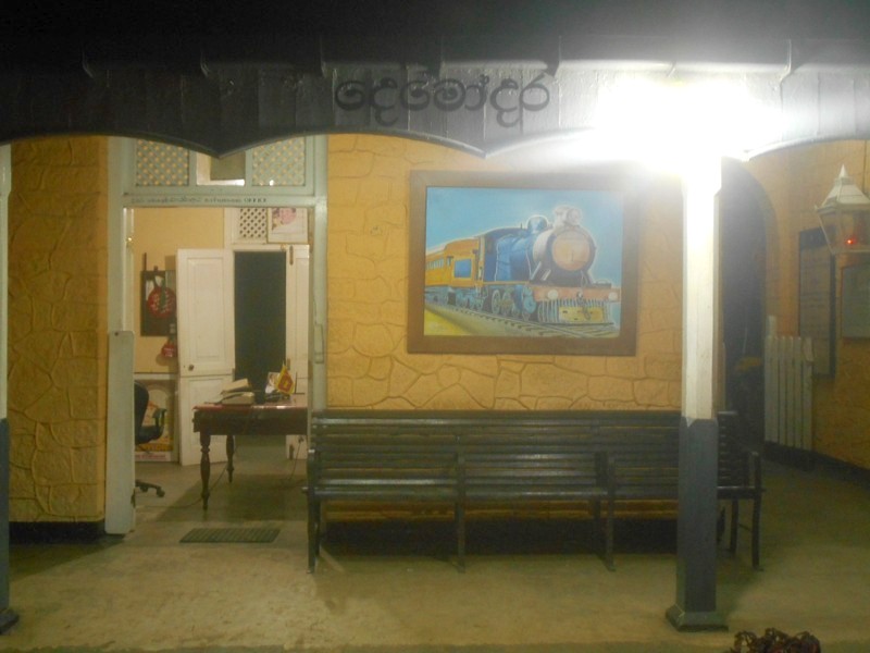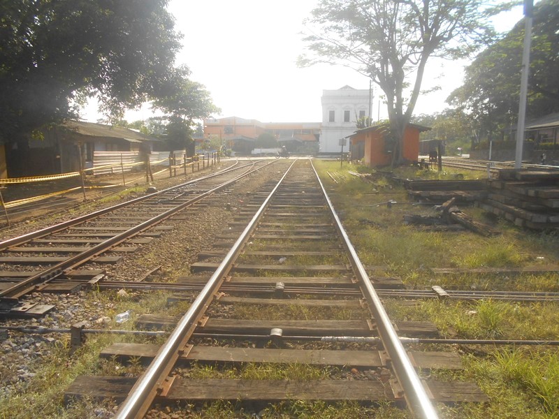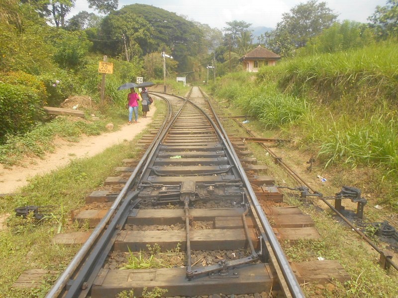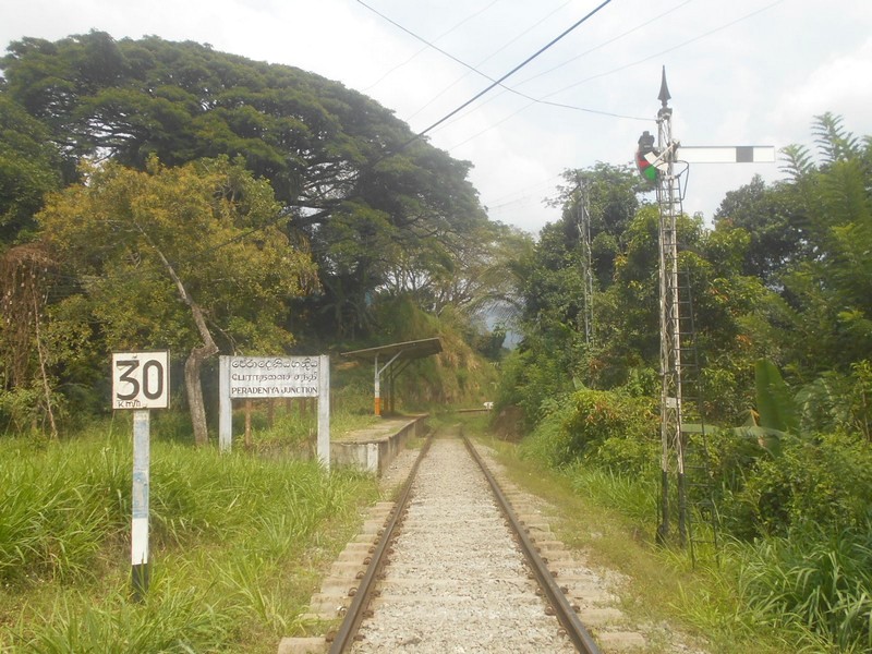 Станция Peradeniya Junction. Впереди прямо — нижняя грань треугольника. Пассажирские поезда
