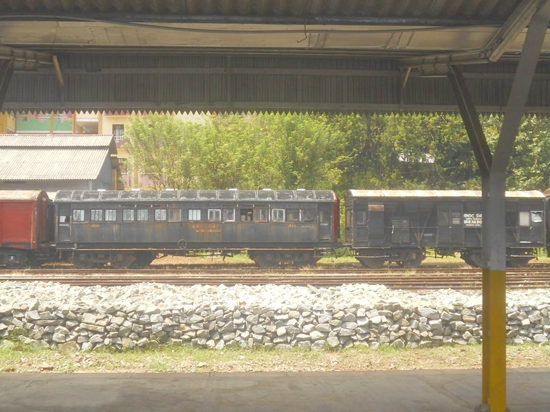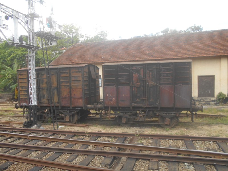 Двухосные вагоны на станции Kandy. Вероятно, им не меньше семидесяти лет. Допустимо, что может быть и сто лет.