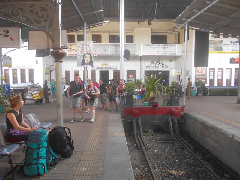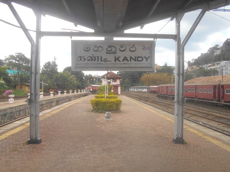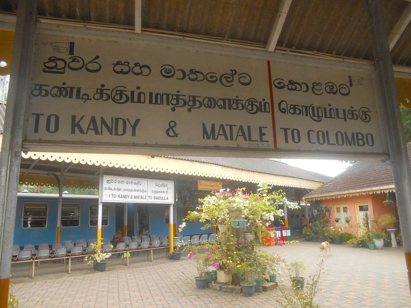 Вокзал Канди. Для китайцев и японцев распечатали несколько слов, вероятно, с помощью