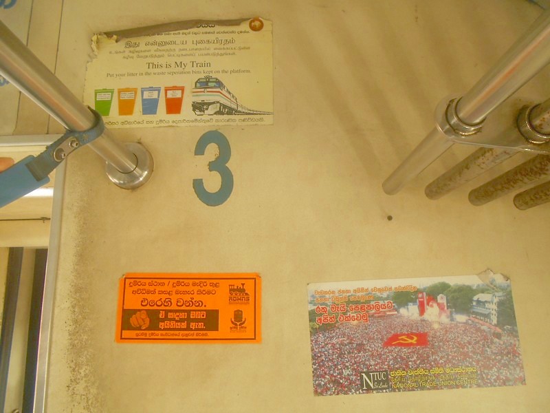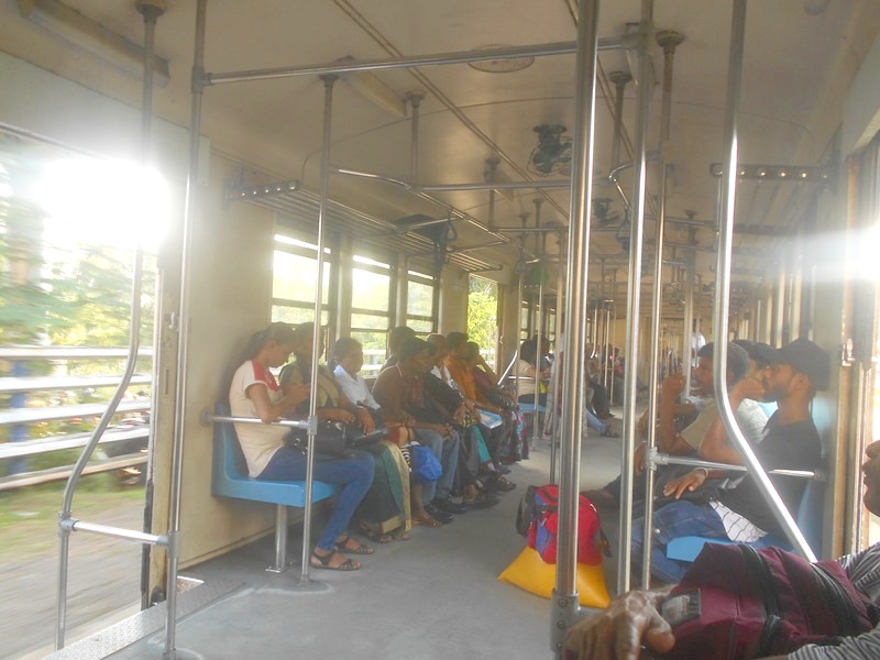 Переполненным пригородным поездом — дальше, до Mount Lavinia. Пришлось стоять. Двери тут не закрываются, как и в индийских поездах, и это нормально. Есть новые поезда вполне «европейского» облика, произведены в Китае.