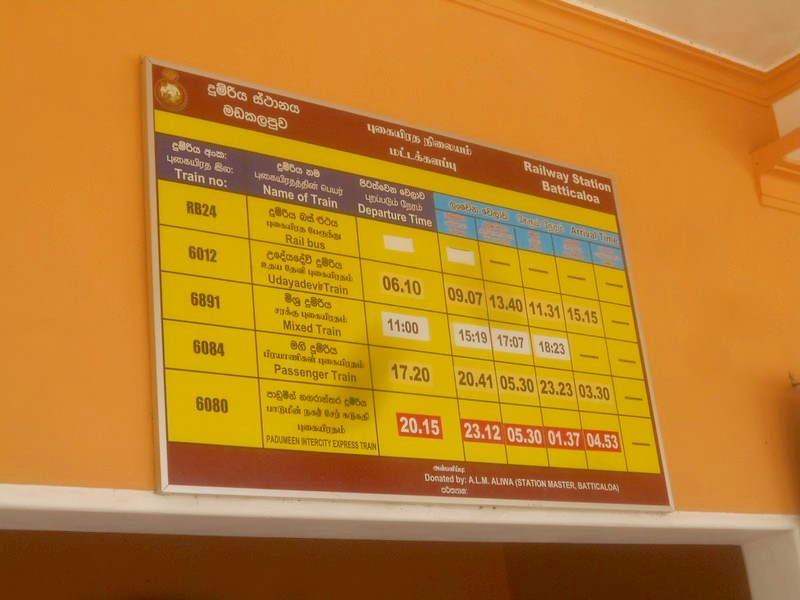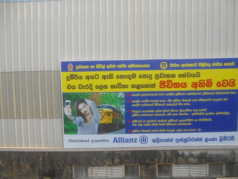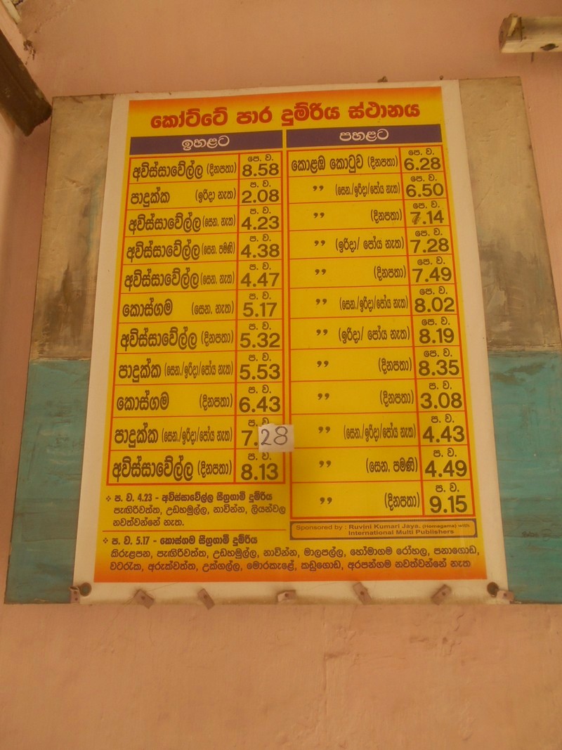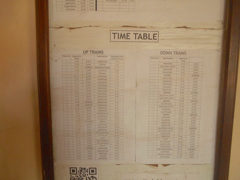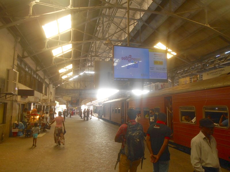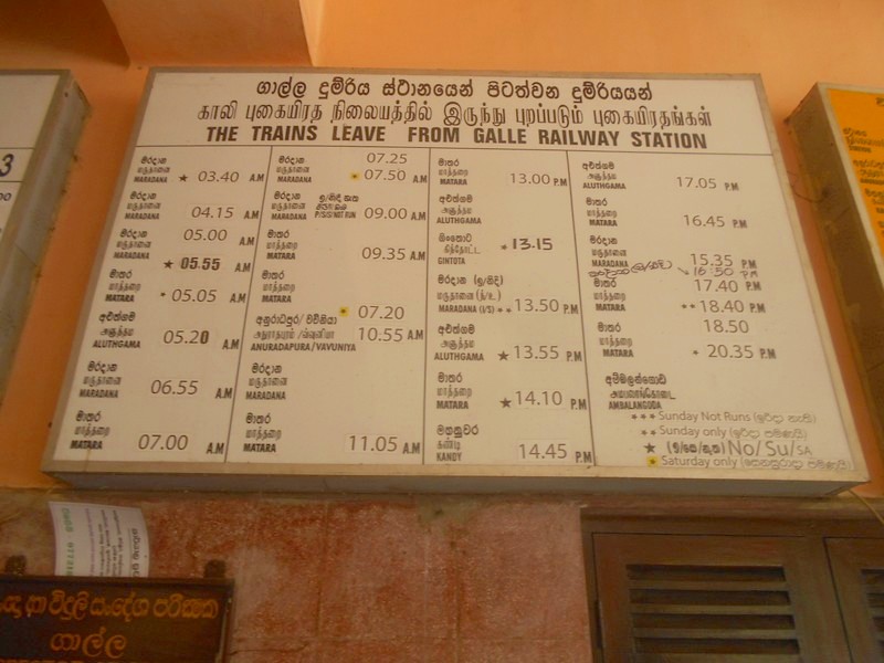 Немалая часть информации — только на сингальском языке (основной язык Шри-Ланки). Письменность нечитаема, цифры «наши». Но английский язык на железной дороге почти все знают. Вообще, уровень его распространённости в стране высок, хотя статуса государственного языка у него нет.