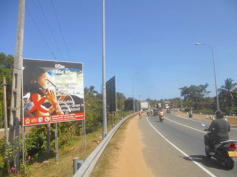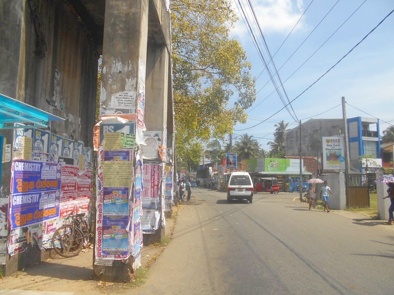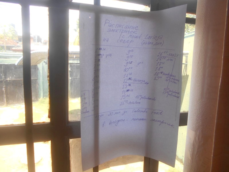 Местные жители на своих телефонах пишут на сингальском языке латинским транслитом — сингальское письмо в телефоны не внедрено. Даже на имевшемся у меня нетбуке сингальская письменность не читалась, отображалась одинаковыми «квадратиками». Расписания движения поездов на многих станциях — только на сингальском, нечитаемой для нас письменностью.