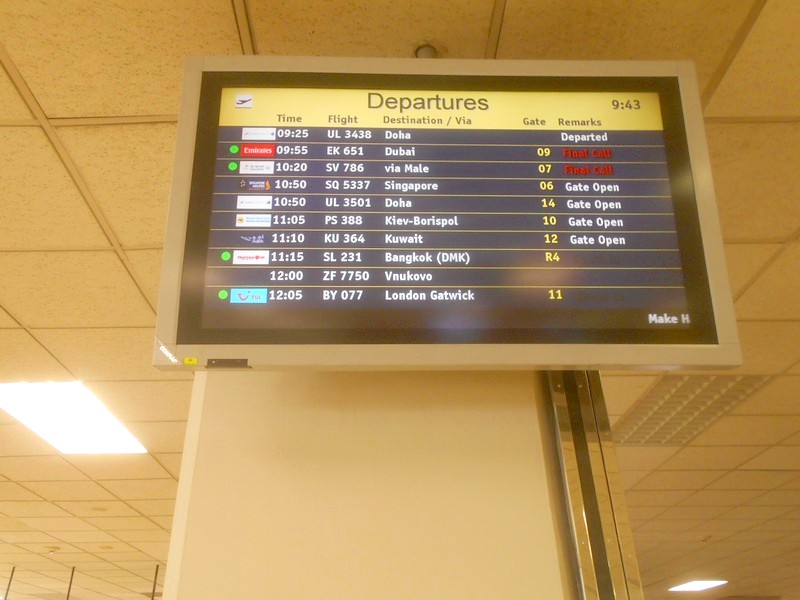 Удивительное дело, на табло было указано прибытие рейса Варшава — Коломбо, и в аэропорту была табличка wymiana walut korzystna stawka.