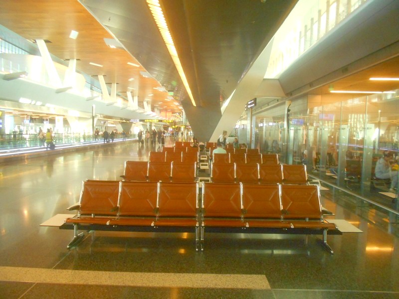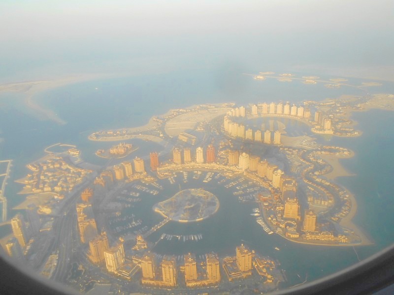 Пересадка в столице Катара. Интересное место, надо бы тут побывать, когда наконец пустят поезда. Маленькая страна площадью с очень тяжёлым для жизни климатом. Это как «Норильск наоборот». Полгода температура 40-50 градусов. В отличие от Русской Азии (Ташкент, Термез), где летом жарко, но сухо, тут кругом море, а потому жарко и влажно.