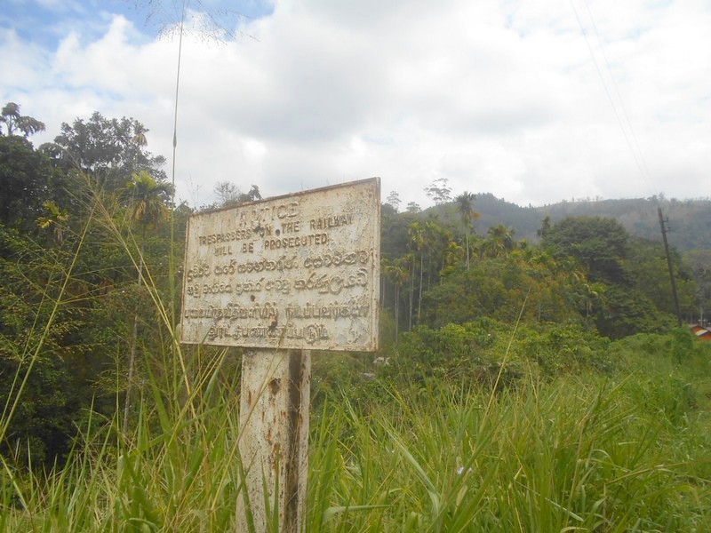Станция Inguru-Oya. Старая табличка, сообщающая о запрете ходить по путям.