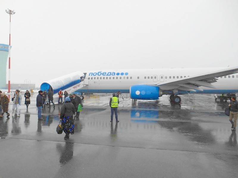 Аэропорт Магас. Тут всё нормально, вход с пропуском вещей через стандартный для всех аэропортов России сканер без дополнительных обысков и допросов. И полнейший игнор всех тех строгостей, которые устраивает авиакомпания «Победа». Как известно, у неё жёсткие ограничения по объёму проносимой ручной клади, из-за чего я вынужден заталкивать спальный мешок под куртку.