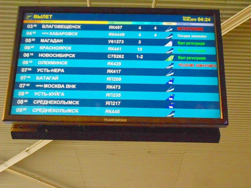 И вот слегка шокирующее известие и трудный выбор: мой рейс будет не сразу в Магадан, а в Якутск и только потом в Магадан! В билете об этом ничего не было сказано.