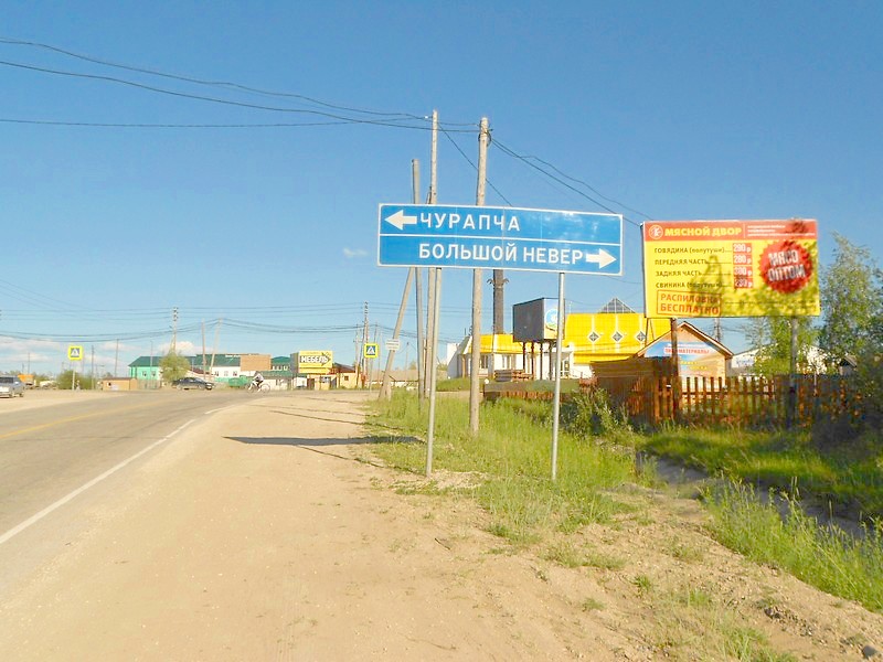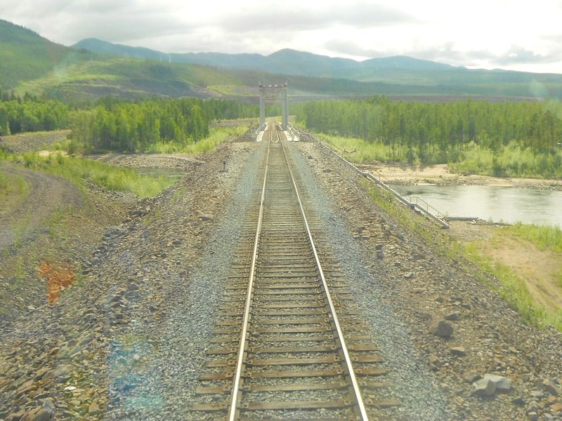 А наш поезд продолжает мчаться по бесконечным эстакадам. Местность преимущественно равнинная, эстакады здесь нужны больше для того, чтобы не «разрезать» железной дорогой сельскохозяйственные угодья. Здесь густонаселённая местность, «ядро» земель народа саха (якутов), место сосредоточения якутских святынь. Если тут выйти из вагона, даже в районном центре Чурапча или Ытык-Кюёль — почти невозможно будет услышать русскую речь, если только специально к кому-то не обратиться. Здесь хорошо сохранился якутский язык и традиции. При этом все местные жители, кроме родного якутского, свободно владеют и русским языком. Большинство — патриоты России и рады появлению железной дороги.