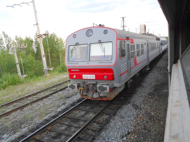 Электропоезд приближается к станции Коршуниха-Ангарская, город Железногорск-Илимский.