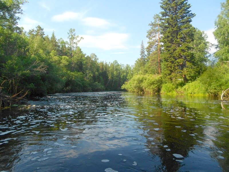 Река, отделяющая железную дорогу от автодороги Моргудон - "Падуны". Преодолеваю вброд.