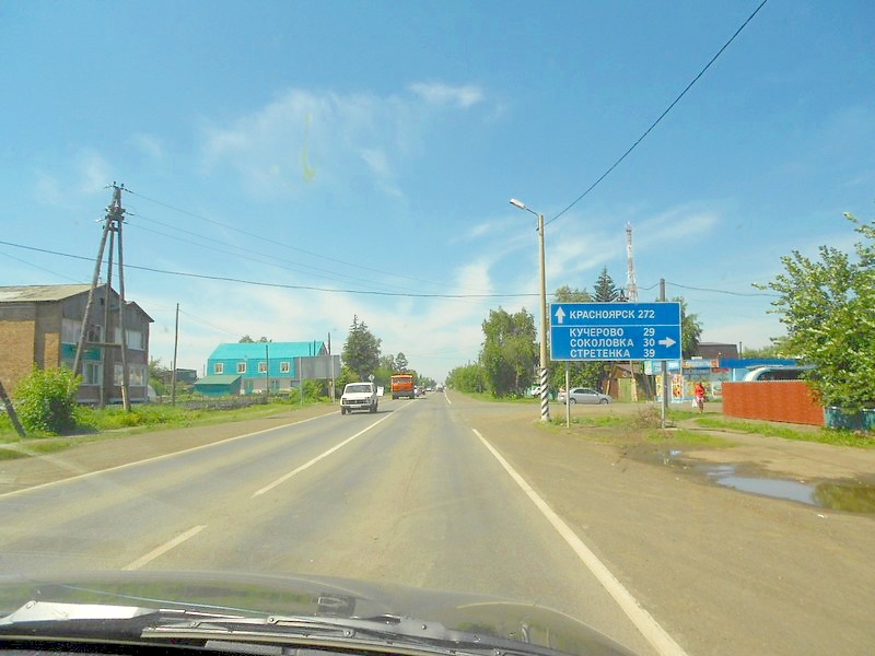 Красноярск объехали, он почти не был виден. Оказывается, появилась объездная дорога, оставляющая миллионный город далеко в стороне. Тогда как подавляющее большинство машин в Бородино шли в Красноярск. Это было важнейшим моментом. Но успевание на поезд Абакан - Новосибирск в Ачинске по-прежнему не гарантируется.