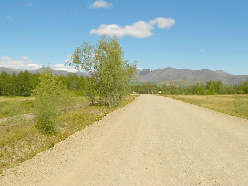 Сплавная, тут исправительная колония-поселение и немного проживающих людей. Дальше - более двадцати километров "ненаселёнки", но периодически с редкими для Магаданской области полями.