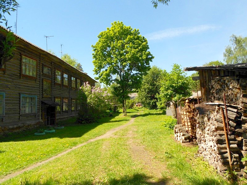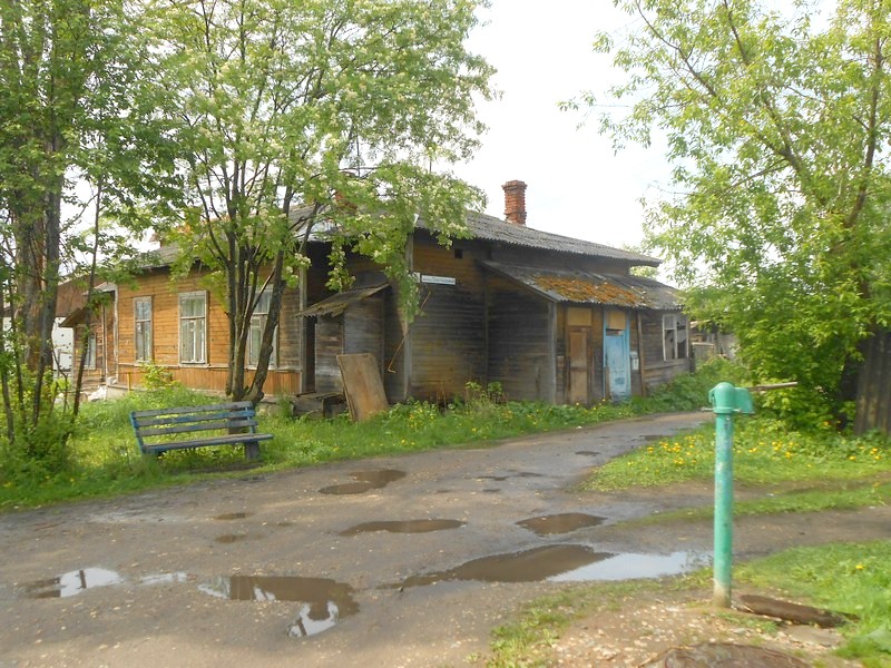 Выходит живущая там бабка, беседует (нормально, без претензий). Дом был железнодорожным, но передан городу. Считается ветхим жильём, расселение обещано десятки лет, но скорее всего она его не дождётся. Из-за этого дом в «зависшем» состоянии — нельзя ни купить, ни продать.