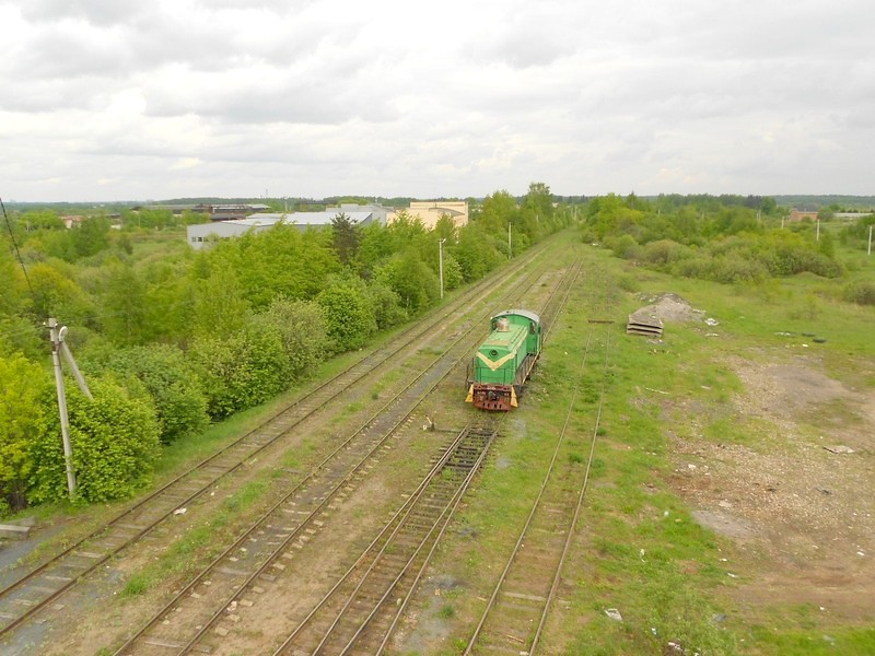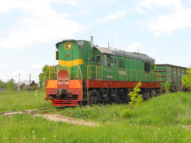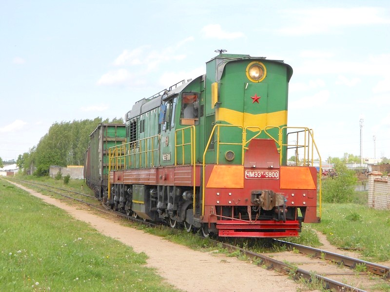 Тепловоз ЧМЭ3Т-5800 на подъездном пути за территорией Ивановского силикатного завода.