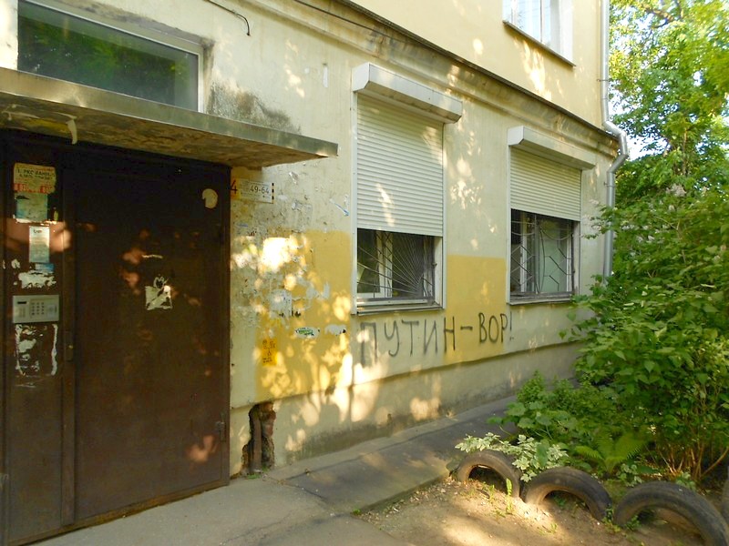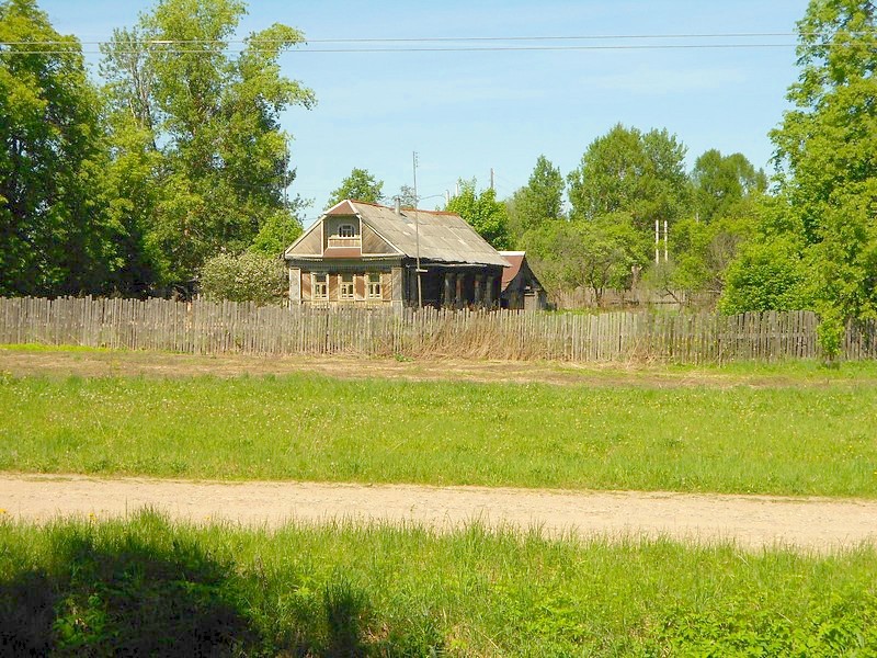 Это хоть и унылая одноэтажная лачуга, но многоквартирная. Очень распространённое у нас явление: сельские дома разделены на части. Это, я считаю — наивысший позор и одна из самых ужасных реалий российской жизни, этого никак не должно быть. Не должно быть ни одного сельского дома более чем на одну семью — однако таких домов в ряде мест больше половины. Другие части дома освободились, ибо там все умерли, но занимать их запрещено.