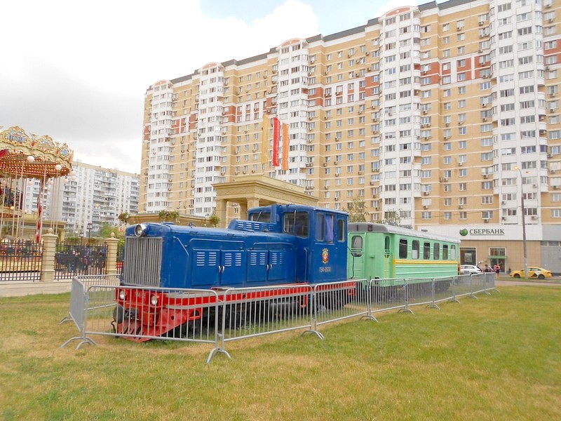 На следующий день после завершения второй малой рабочей экспедиции отправляюсь к станции метро «Бульвар Дмитрия Донского» на дальней «замкадной» окраине Москвы. Сюда привезены на короткое время тепловоз ТУ4-2630 и пассажирский вагон из Тёсово. Ездить он не будет, рельсов нет — тепловоз с вагоном являются статичными экспонатами.